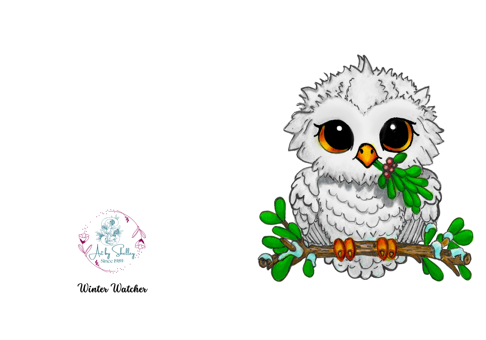 Capture the magic of winter with “The Winter Watcher” greeting card, featuring an enchanting snowy owl delicately perched while holding red berries. This heartwarming design celebrates the serene beauty of winter wildlife, making it the perfect choice for anyone who appreciates nature or loves owls. Whether for holiday greetings, birthdays, or simply sending warm wishes, this card delivers a touch of charm and elegance.