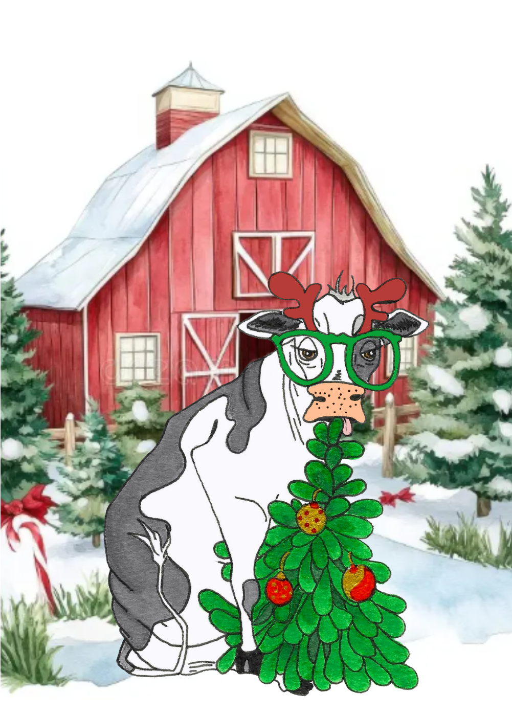 Bring a smile to your loved ones’ faces this holiday season with this charming greeting card featuring a hilariously cute design. Highlighting a curious cow nibbling on a Christmas tree in front of a classic, big red barn, this card effortlessly combines humor with a festive atmosphere. It’s perfect for anyone who appreciates a touch of quirkiness alongside traditional holiday vibes. Show your sense of humor and share the joy of the holidays in a way that’s sure to leave a lasting impression.