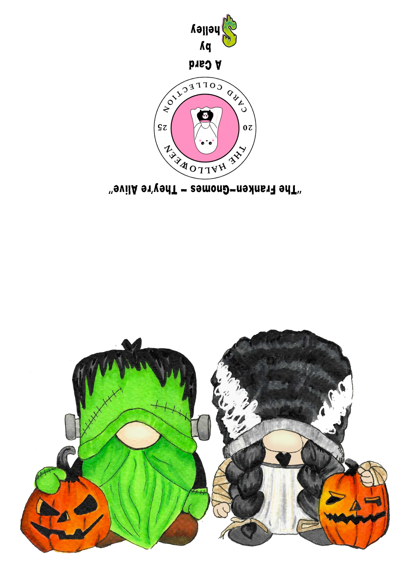 Looking to surprise your loved ones with a touch of the whimsical? This uniquely designed greeting card, featuring male and female gnomes dressed as Frankenstein and the Bride of Frankenstein, delivers the perfect blend of charm and Halloween magic. Whether it’s for Halloween celebrations, a themed birthday, or a simple yet cute message, this card is an unforgettable way to express your thoughts.
