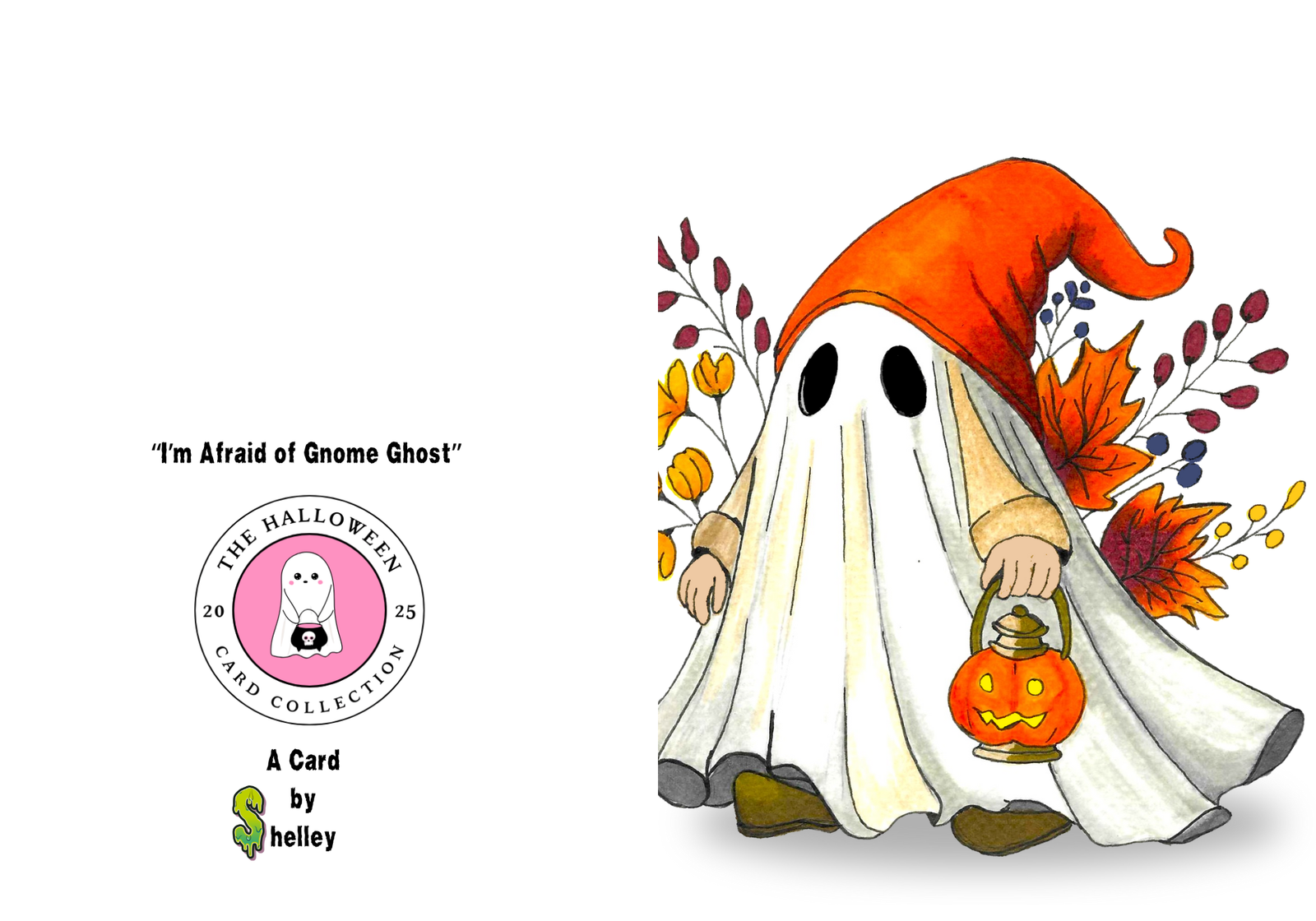 Printed on 5×7  pre-scored and made of heavy weight 300 GSM card stock. The lovable gnome adorned in ghostly attire brings a bright and cheerful design that captures the essence of fall. Printed on sturdy cardstock with vibrant colors, it’s made to last. The card is blank inside, allowing you to personalize your message and express your thoughts for any autumn occasion—be it Thanksgiving, Halloween, or even a friendly hello.