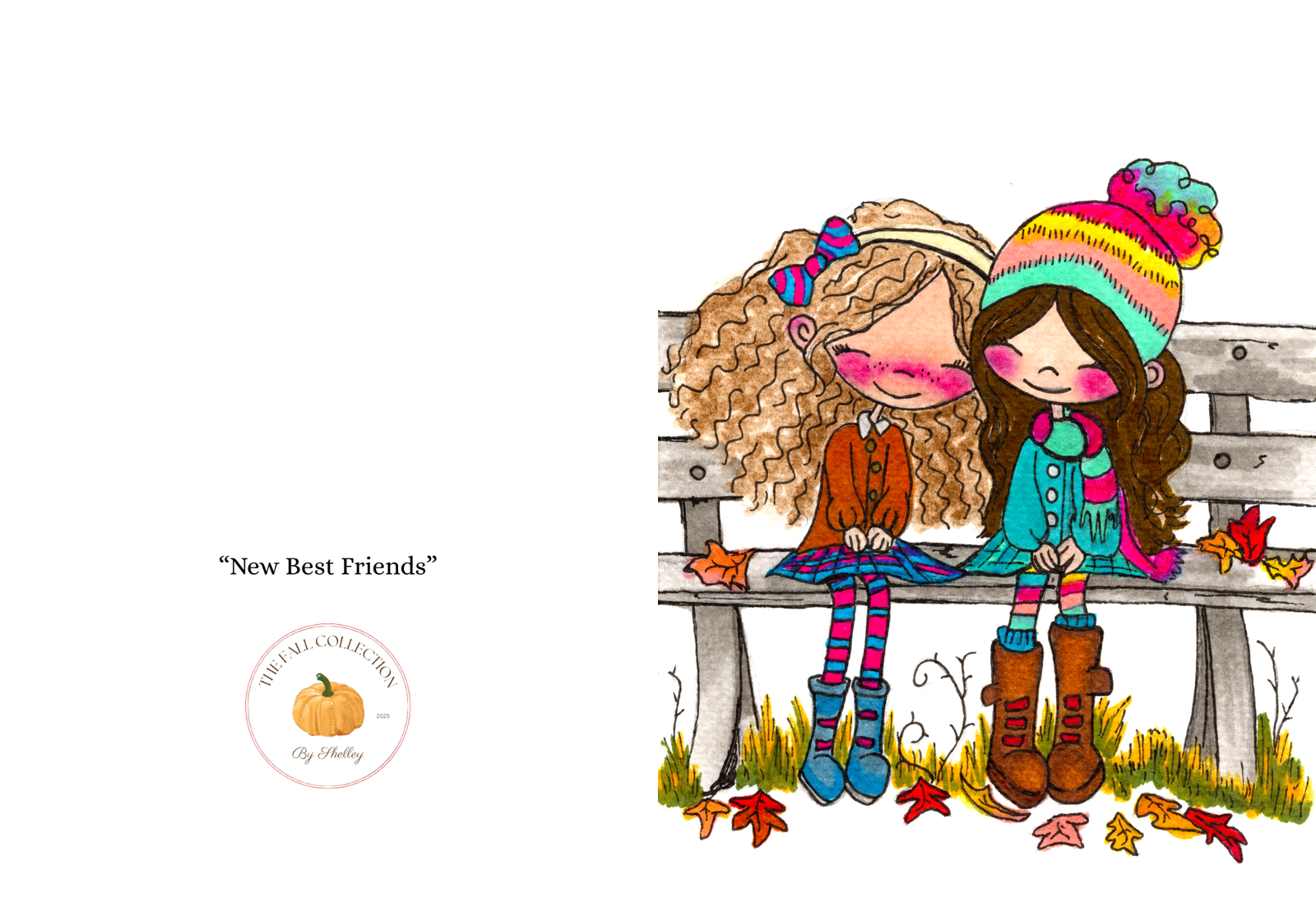 Crafted with attention to detail, the artwork on this greeting card highlights the rich colors of fall—deep oranges, vibrant reds, and calming browns—making it visually captivating. The two young friends, depicted in cozy attire, remind us of the joy and comfort found in cherished friendships. Printed on premium-quality cardstock, the card is durable and provides plenty of blank space inside for your personalized message. Whether it’s for a birthday, Thanksgiving, or simply a note to say hello, this card effortlessly fits any occasion.