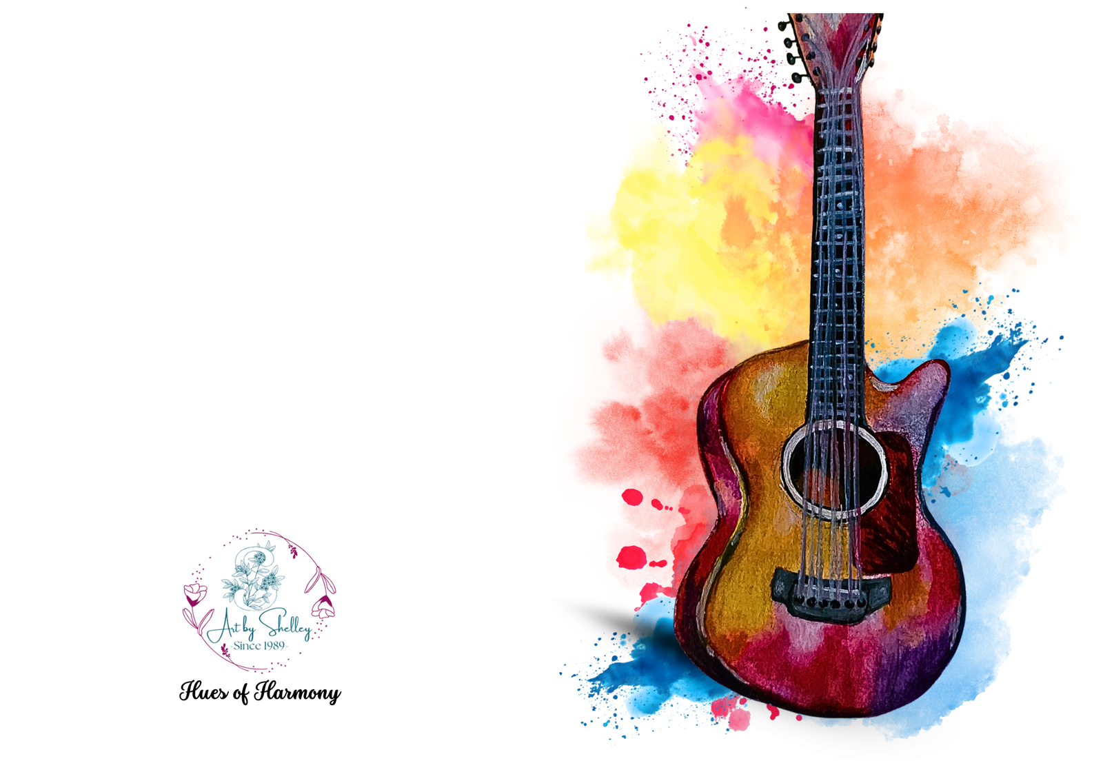 Share your love for creativity, music, and art. Grab this vibrant guitar watercolor greeting card today and let your words resonate as brightly as its colors.