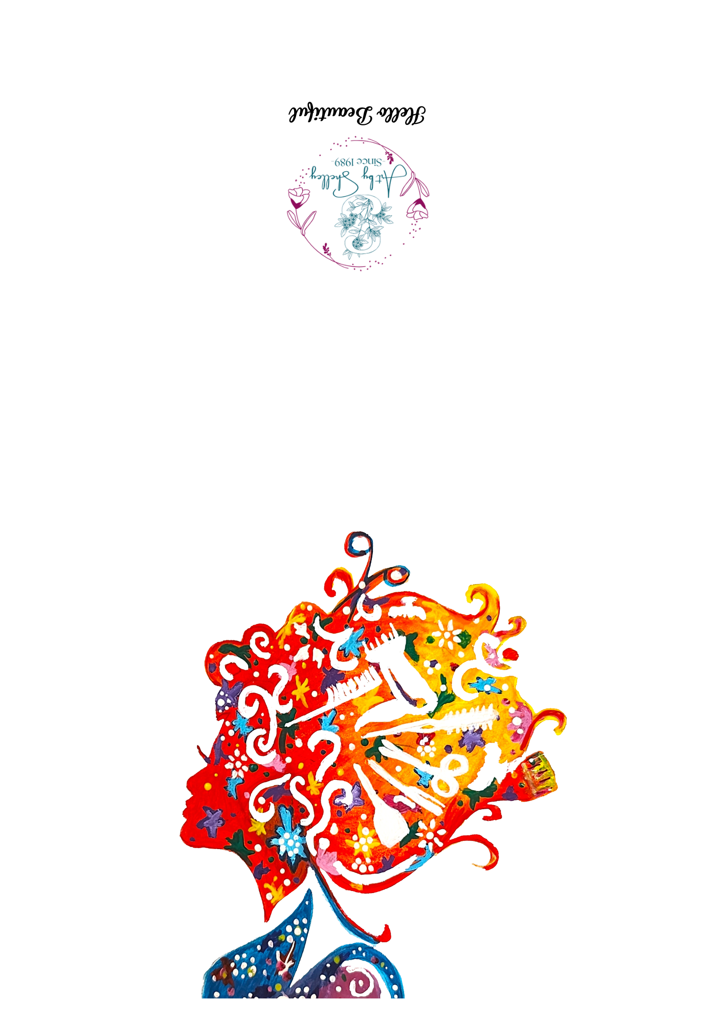 What makes this greeting card truly unique is the intricate arrangement of hairdresser tools seamlessly incorporated into the design of the silhouette’s flowing hair. From scissors to blow dryers, these subtle details celebrate creativity, artistry, and the beauty of self-expression, making it the ideal card to give to hairstylists, salon professionals, or anyone who values the art of styling and beauty.